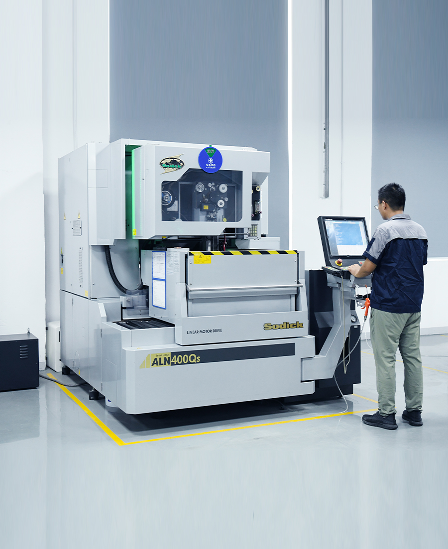 加工車(chē)間擁有來(lái)自日本ROKU-ROKU的CNC、瑞士夏米爾的放電、中國(guó)臺(tái)灣宇青的磨床、快捷的銑床、瑞士??怂箍档臋z測(cè)設(shè)備等